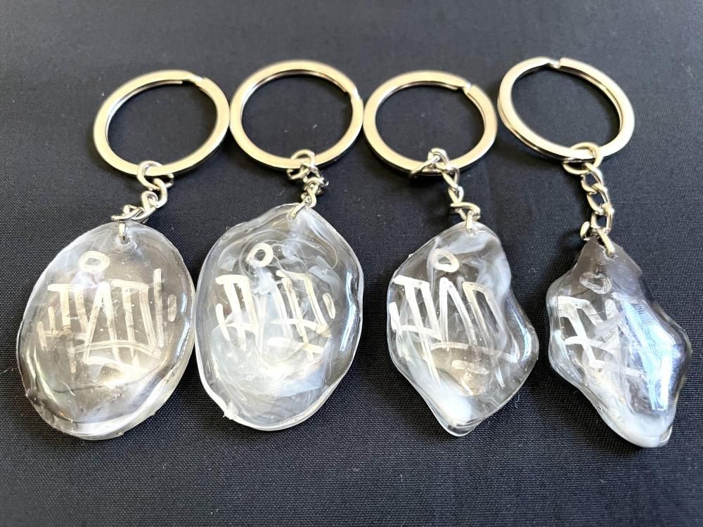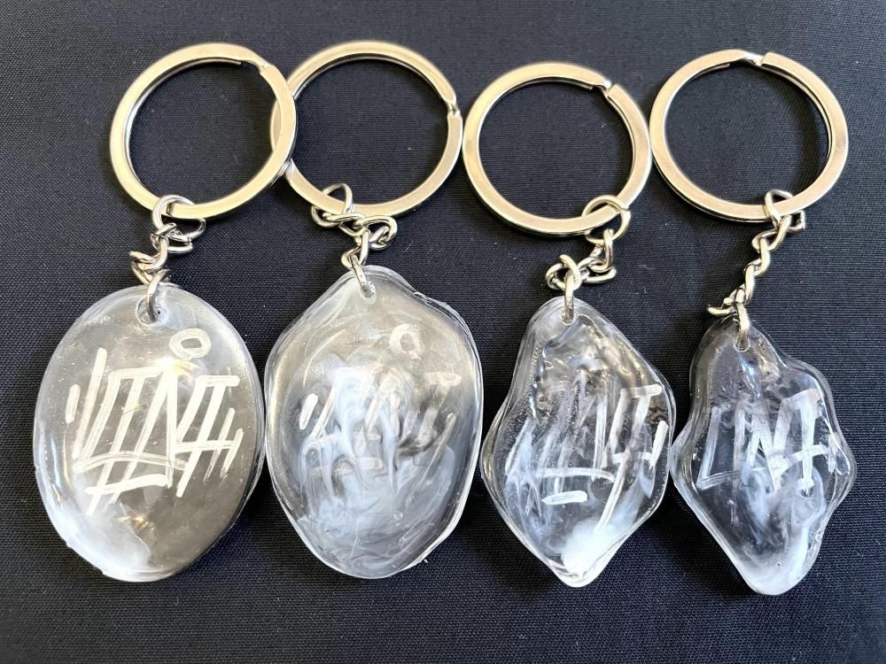 グラフィティライター【PEACEMAN】氏制作のクリスタルキーホルダーです。