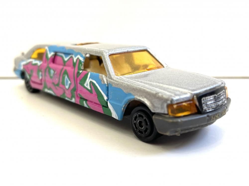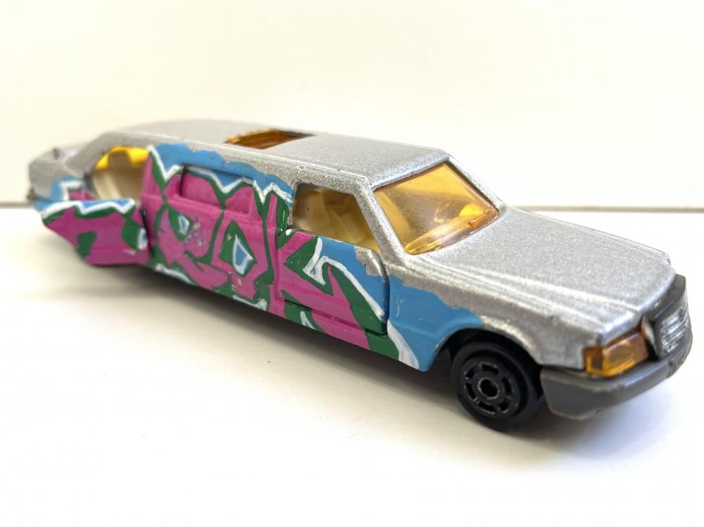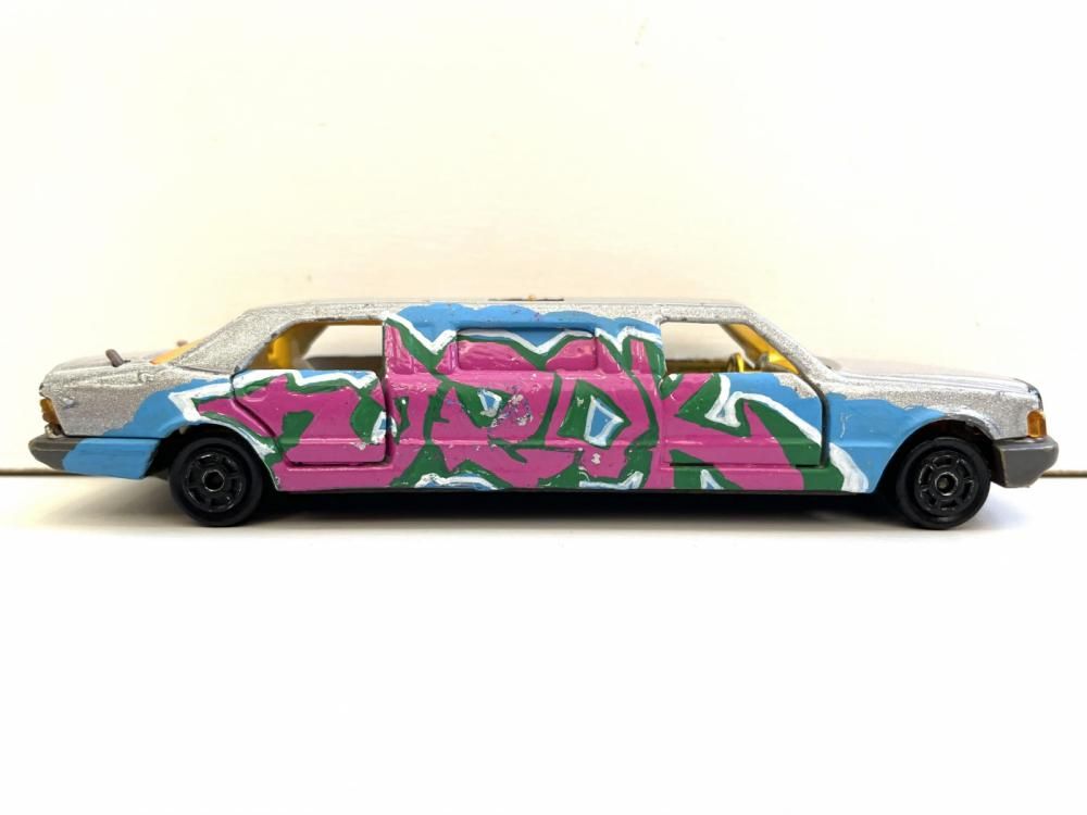 手のひらサイズのリムジンの車体にJPDK氏のクイックピースが書き込まれております。